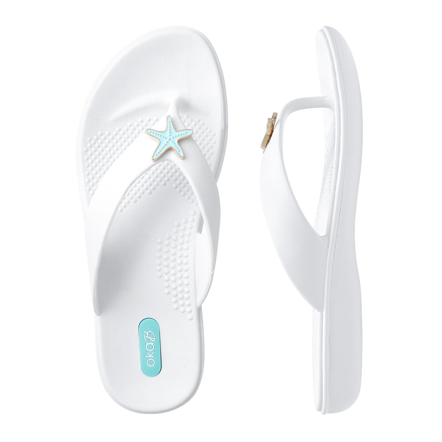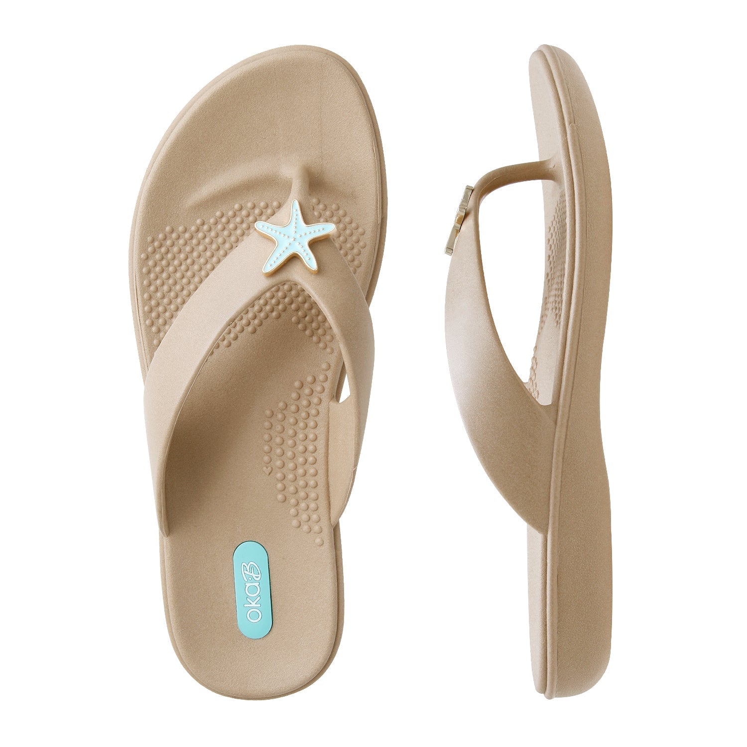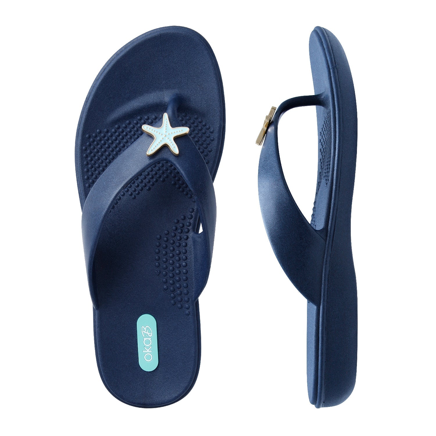 Slide into beachy bliss with Dania, our playful flip-flop adorned with a sea-inspired starfish accent. Designed with our signature comfort footbed and a splash of whimsy, this style brings vacay vibes to every step, whether you're poolside or running errands. Lightweight, supportive, and made to make a statement.