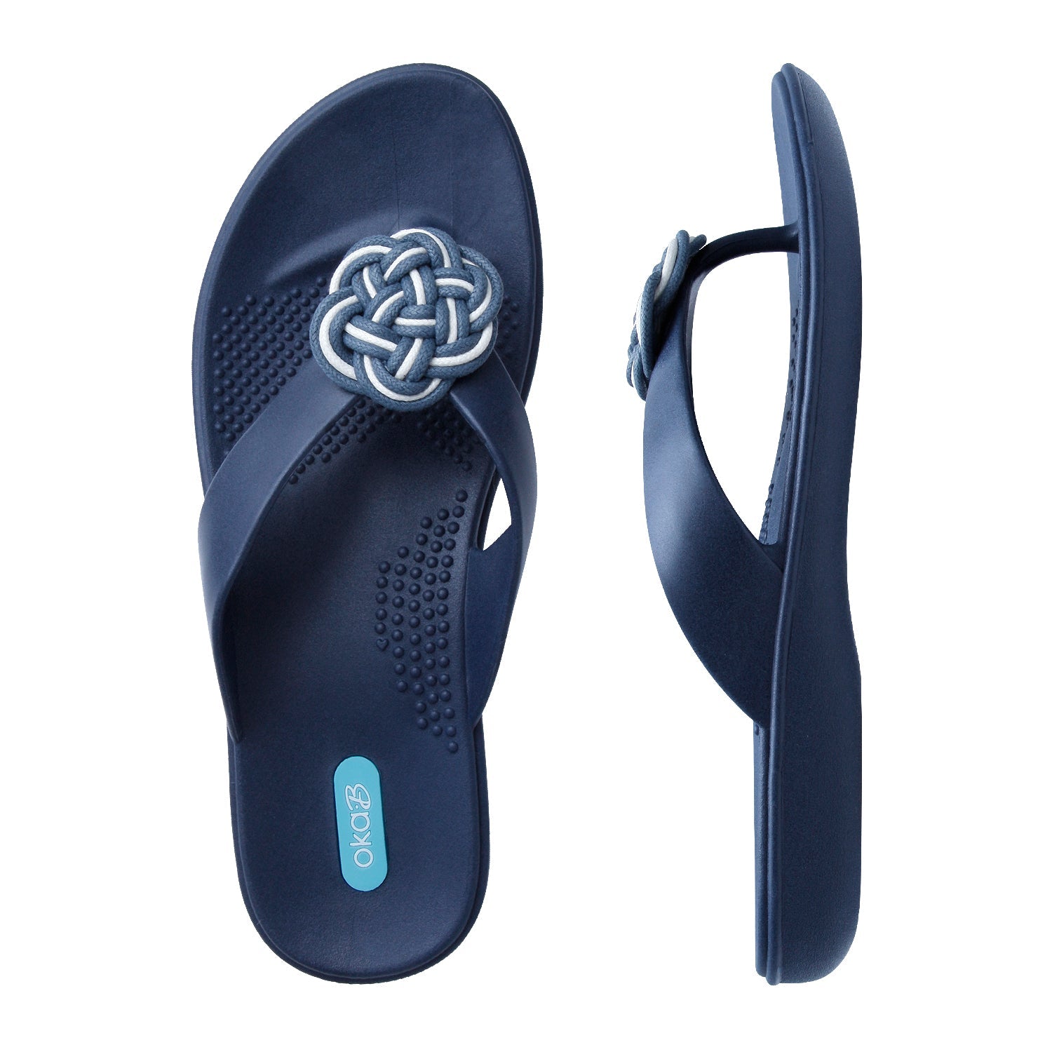 Nautical charm meets everyday comfort. The Raleigh flip flop features a striking rope-knot medallion that brings a touch of seaside sophistication to your step. Whether you're headed to the boardwalk or brunch, this lightweight, water-friendly thong sandal is your perfect slip-on for coastal cool.