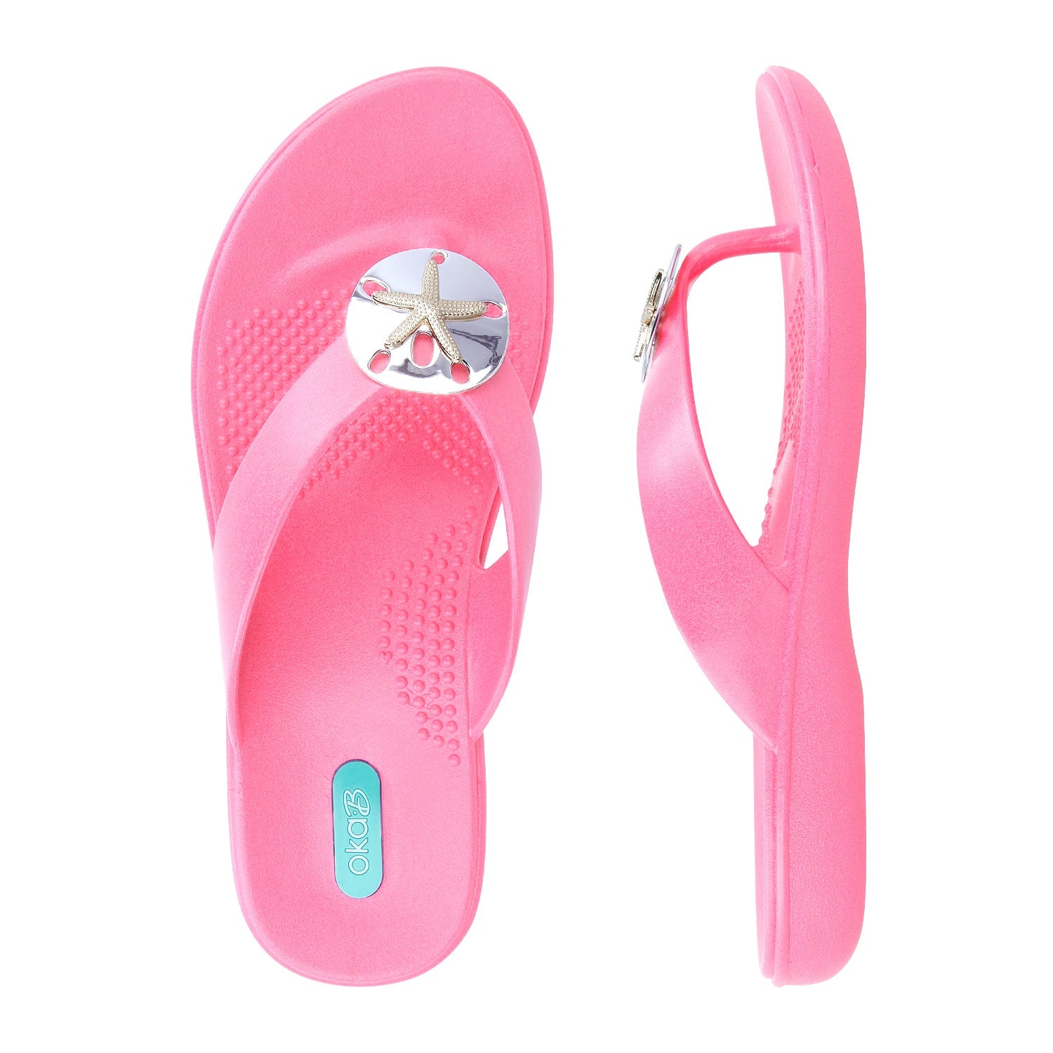 Shimmering in metallic hues with a silver and gold sand dollar pendant, this Sandy thong sandal brings an elegant look to a sporty and supportive fit.
