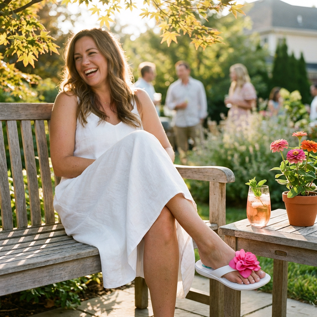 Bold blooms for your brightest days! The Zinnia sandal turns heads with its oversized flower accent and lightweight comfort you'll never want to take off. Made in the USA, these charming slip-ons bring a pop of personality to every step, from poolside to patio brunch.